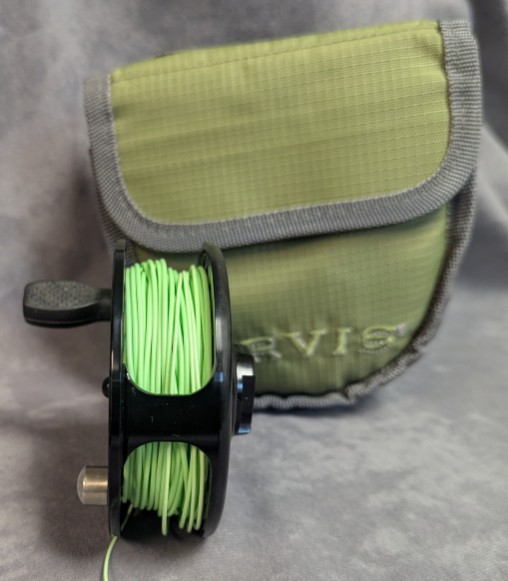 Reel comes packed in factory marked Orvis reel pouch.